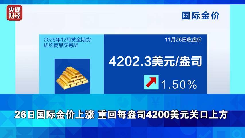 26日国际金价上涨 重回每盎司4200美元关口上方