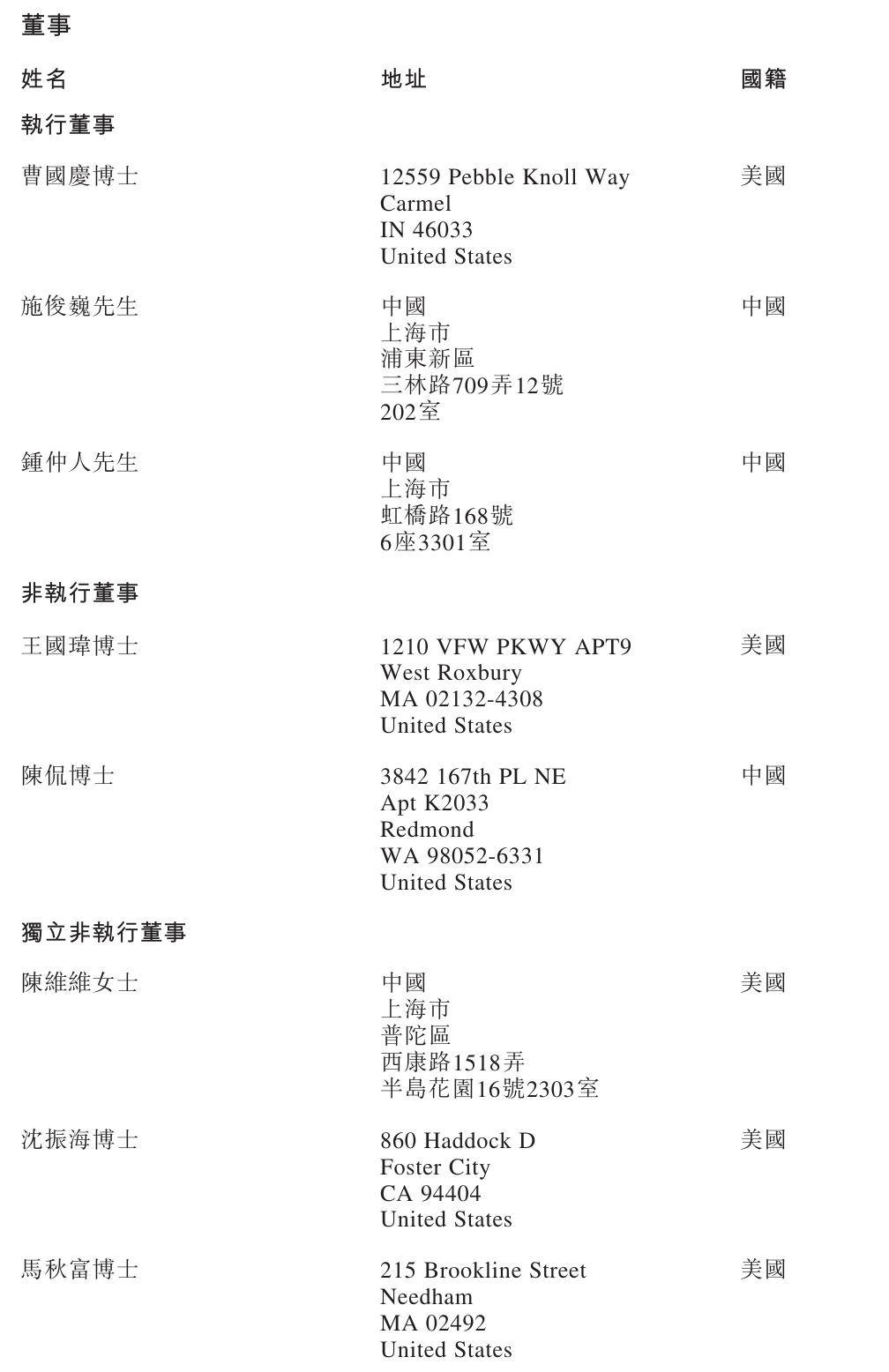 明宇制药执行董事分别为曹国庆博士、施俊巍、锺仲人,非执行董事分别为王国玮博士、陈侃博士;独立非执行董事分别为陈维维女士、沈振海博士、马秋富博士。