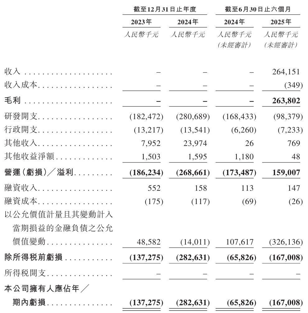 招股书显示,明宇制药2023年、2024年无收入,运营亏损分别为1.86亿元、2.69亿元;公司拥有人应占期内亏损分别为1.37亿、2.83亿元。