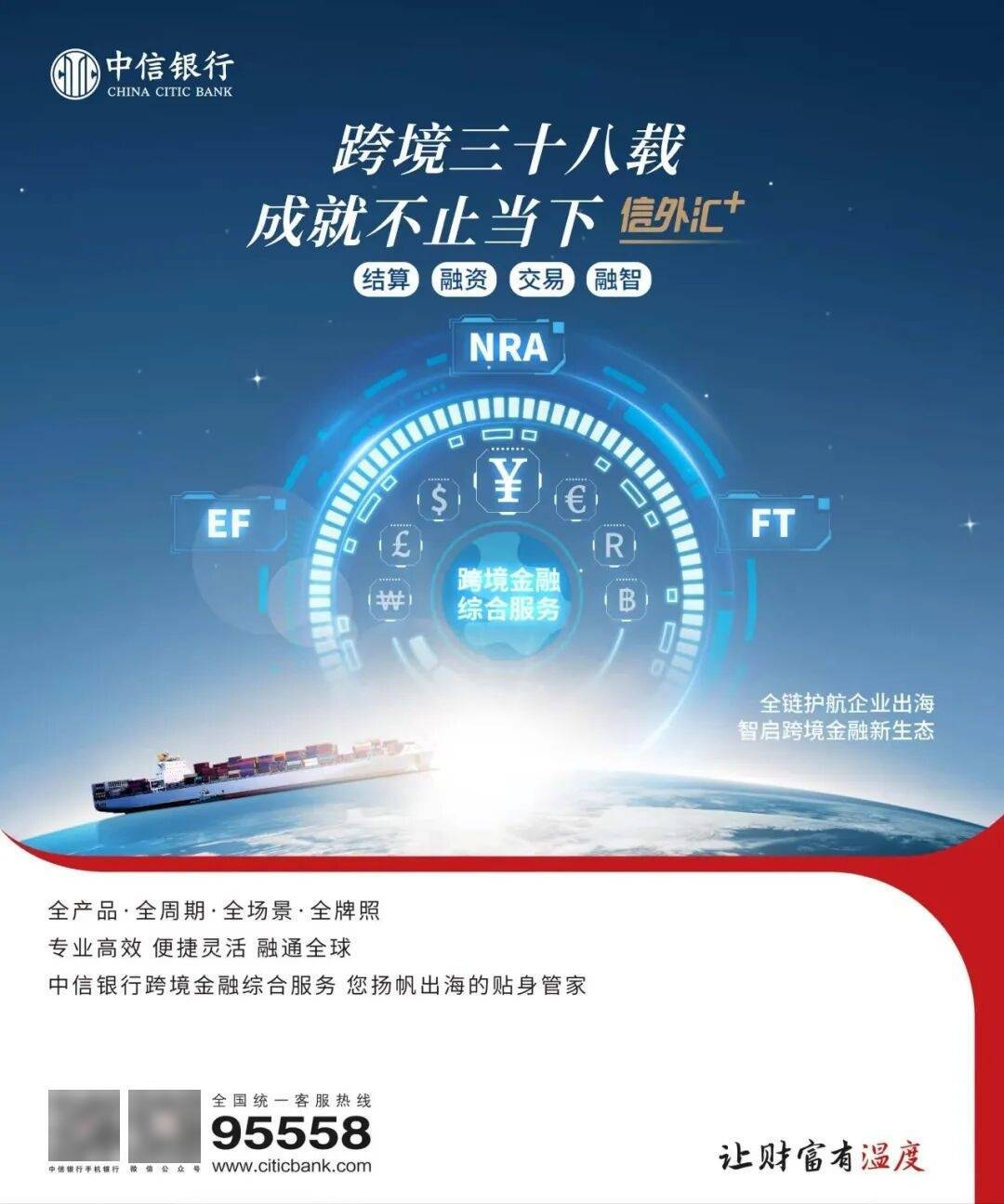 在人民币国际化的浪潮中,中信银行凭借其强大的综合实力、创新的产品服务、先进的技术手段以及开放的生态合作理念,成为推动人民币出海的重要引擎。未来,中信银行将继续秉承“稳慎扎实推进人民币国际化”的要求,不断创新跨境金融服务模式,为人民币在全球范围内的广泛应用贡献更多力量。