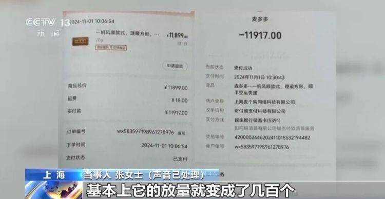 张女士称, 9月末刚接触这个盘的时候,每个人每个账户只能下两次订单,后面到了10月末的时候,基本上它的放量就变成了几百个,你可以一直抢。