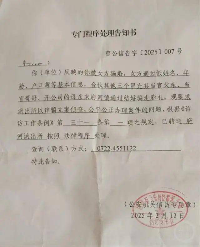 2024年6月,申某某选择报警。警方调查发现,来参加婚礼的老丈人、大舅哥也是假的。