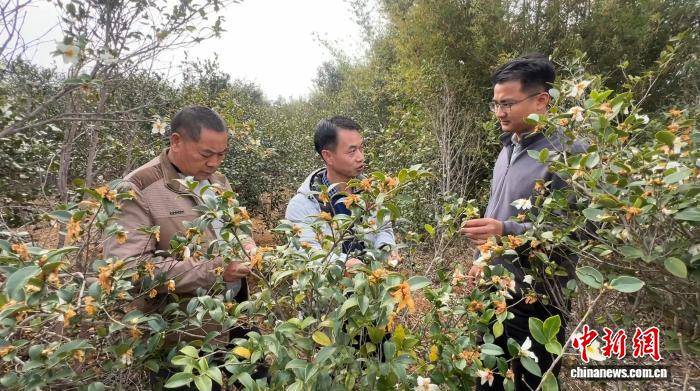 技术人员在油茶林里开展技术指导。陈平成 摄