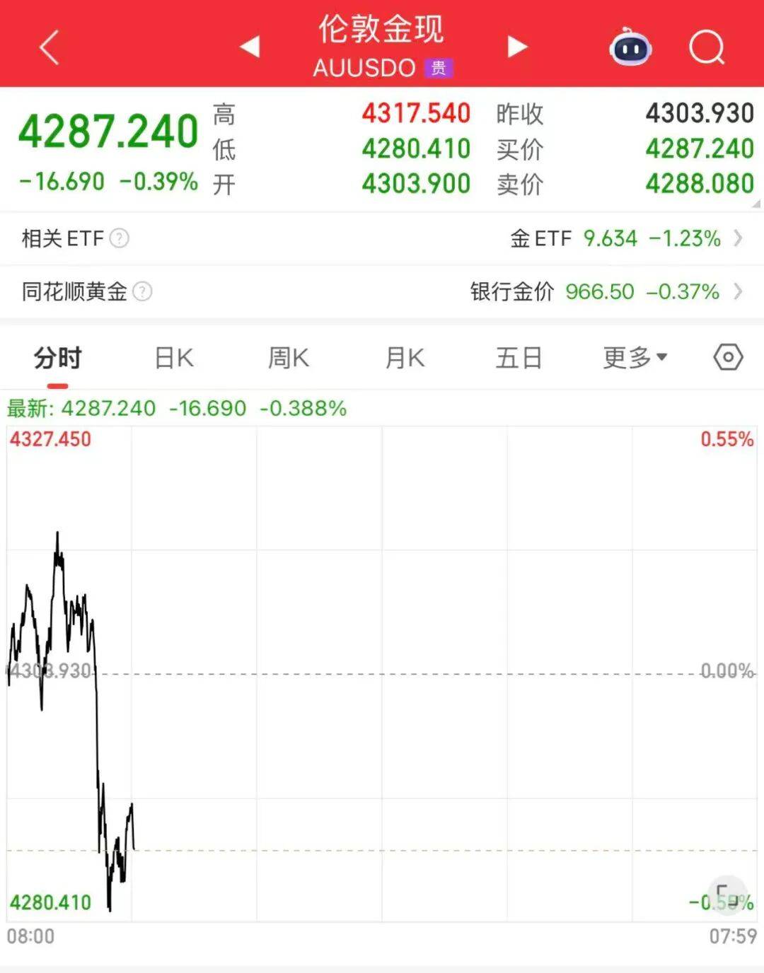 12月15日,现货黄金价格继续上行,伦敦金现价盘中一度突破4350美元/盎司。不过,截至12月16日发稿,现货黄金跳水。