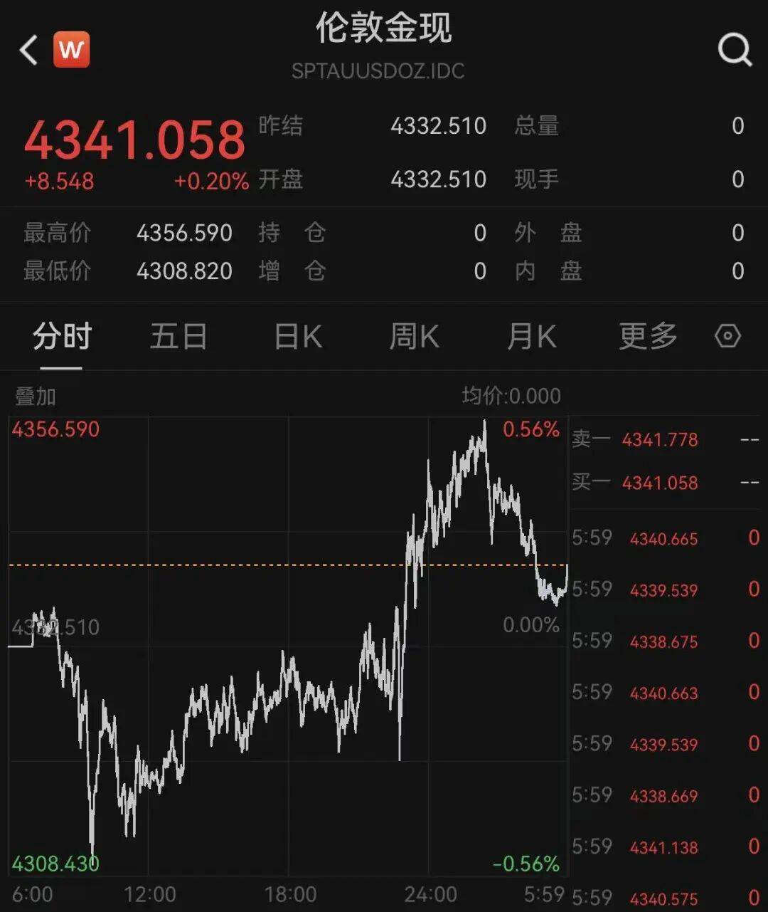 此外,现货黄金也拉升飘红,最终收于4340美元上方。