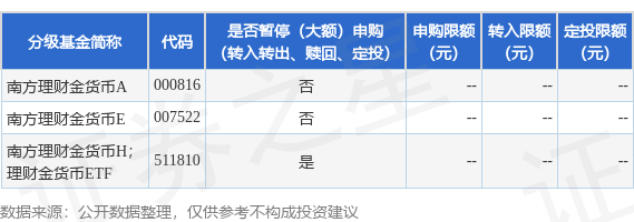 注:南方理财金货币ETF的申赎简称为:理财金H,申购和赎回代码为:511810。