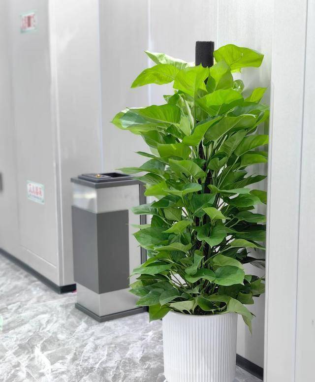 造型成树:大叶绿萝小的时候,需要手动上柱,做好牵拉,叶绿萝顺着水苔柱生长。
