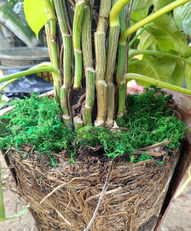 水苔有保湿的作用,而大叶绿萝很喜欢湿润,加上喜欢攀爬,这样种植,能让大叶绿萝顺着水苔柱向上生长,更容易打造成绿萝树。