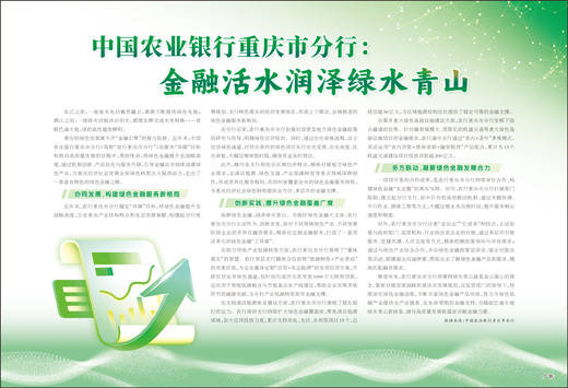 重庆的绿色发展离不开“金融引擎”的强力助推。近年来,中国农业银行重庆市分行(简称“农行重庆市分行”)在服务“双碳”目标和推动高质量发展的征程中,勇担使命,将绿色金融提升至战略高度,通过机制创新、产品优化与服务升级,引导金融活水持续浇灌绿色产业,为重庆经济社会发展全面绿色转型注入强劲动力,走出了一条富有特色的绿色金融之路。