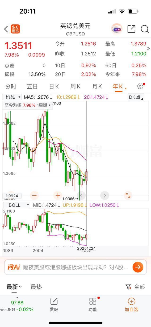 英镑对美元今年以来涨幅7.98%