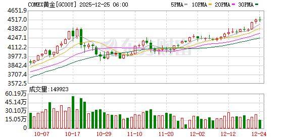 今年年初,黄金期货价格约为每盎司2,640美元。本周一,金价一度突破每盎司4,500美元的历史新高。
