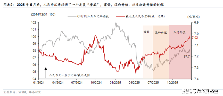 今年5月,美国对华145%的极限关税降级后,人民币便从7.42的历史低点开启反弹,11月后更是加速上行。