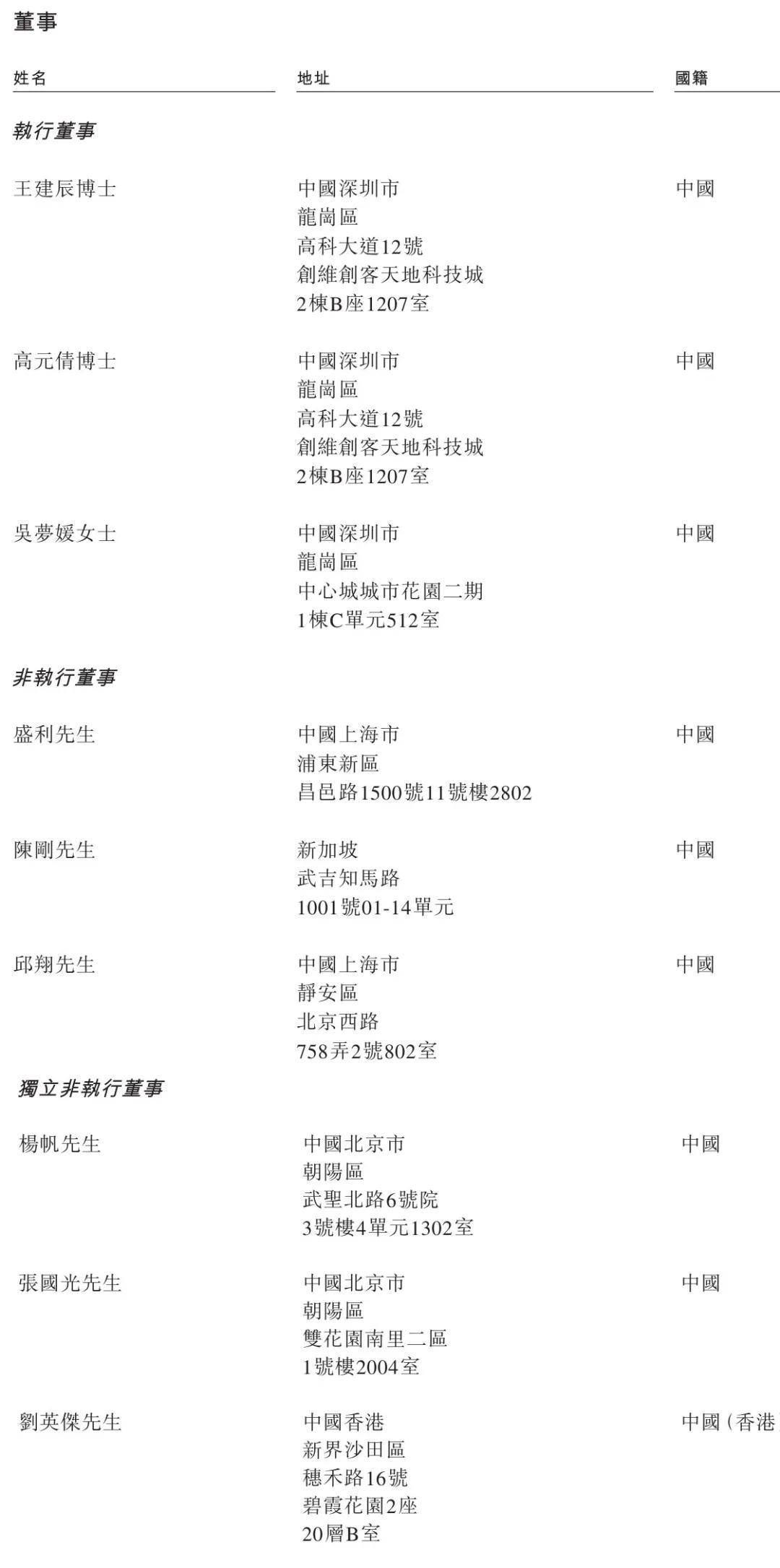 王建辰博士,36岁,为董事长、执行董事兼首席执行官,于2017年5月与高博士共同创办公司,自2017年5月起担任公司董事兼首席执行官。彼于2022年1月调任为执行董事。