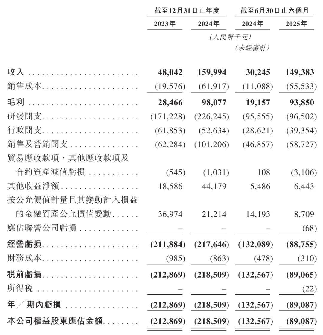 招股书显示,精锋医疗2023年、2024年营收分别为4804万、1.6亿;毛利分别为2847万、9808万元;研发开支分别为1.71亿、2.26亿元;销售开支分别为6228万、1亿元;经营亏损分别为2.12亿、2.18亿元;期内亏损分别为2.13亿、2.19亿元。