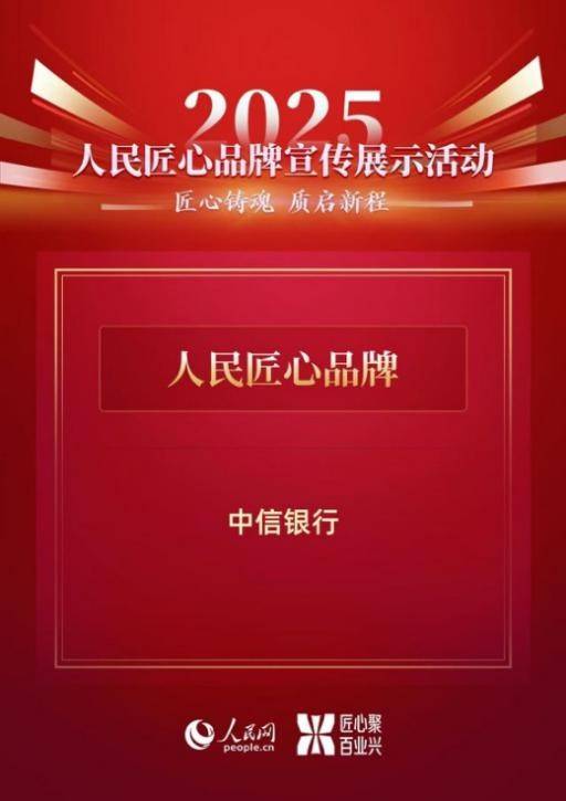 本届活动以“匠心铸魂 质启新程”为主题,面向各行业、各领域,旨在发掘各行业中坚持以匠心推动高质量发展、赢得市场与用户信赖的优秀品牌。其中,“人民匠心品牌”的评选历经两个月多轮审核,从质量、创新、实力、声誉、效益及责任等多维度进行综合评估。中信银行连续三年脱颖而出,体现了其在深耕金融服务、扎实品牌塑造上始终如一的匠心坚守。