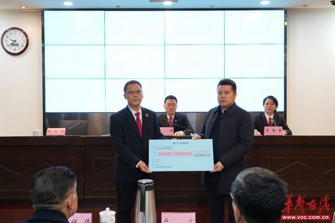 (“2025 年治理欠薪冬季专项执行行动”执行案款集中兑现大会现场。 长沙中院供图)
