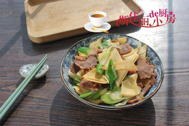 推荐菜谱【大葱千张炒牛肉】 原料: 大葱 千张 卤熟牛肉片 生抽 油盐