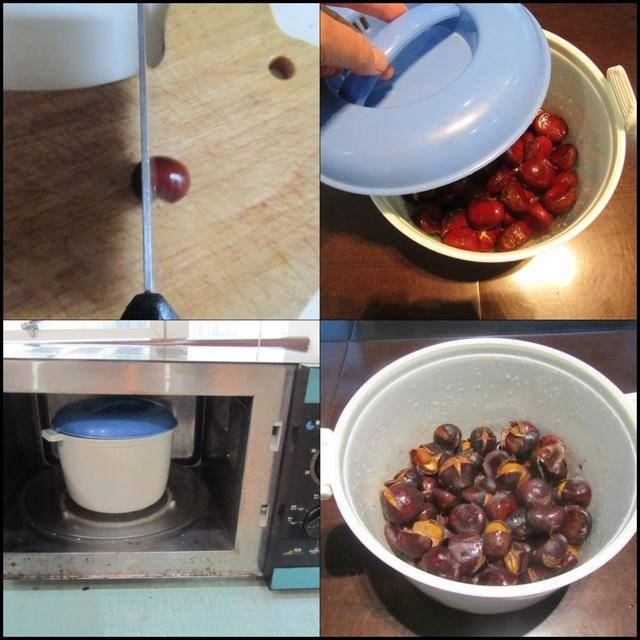 制作过程: 将板栗用冷水洗净,用在板栗上划个长口,放入电饭煲微波盒中,加入2勺白糖和少许水,拌均匀后腌制半个小时, 再加入半勺植物油拌匀,放入微波炉中高火转上15分钟, 拿出来拌一下,再放进微波炉中继续转上5分钟,拌均匀后再继续打上5分钟即可。