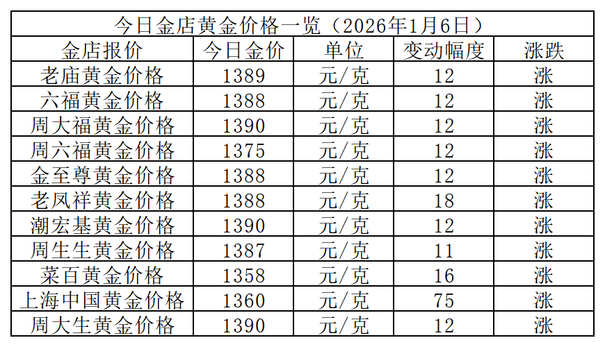 以下是各大品牌金店详细报价: