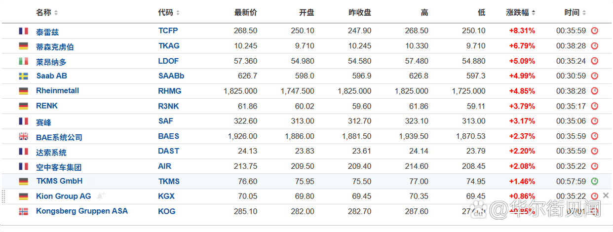 英国伦敦上市、对军工股“照收不误”的Future of Defence UCITS ETF(NATO.LN)收涨2.79%。