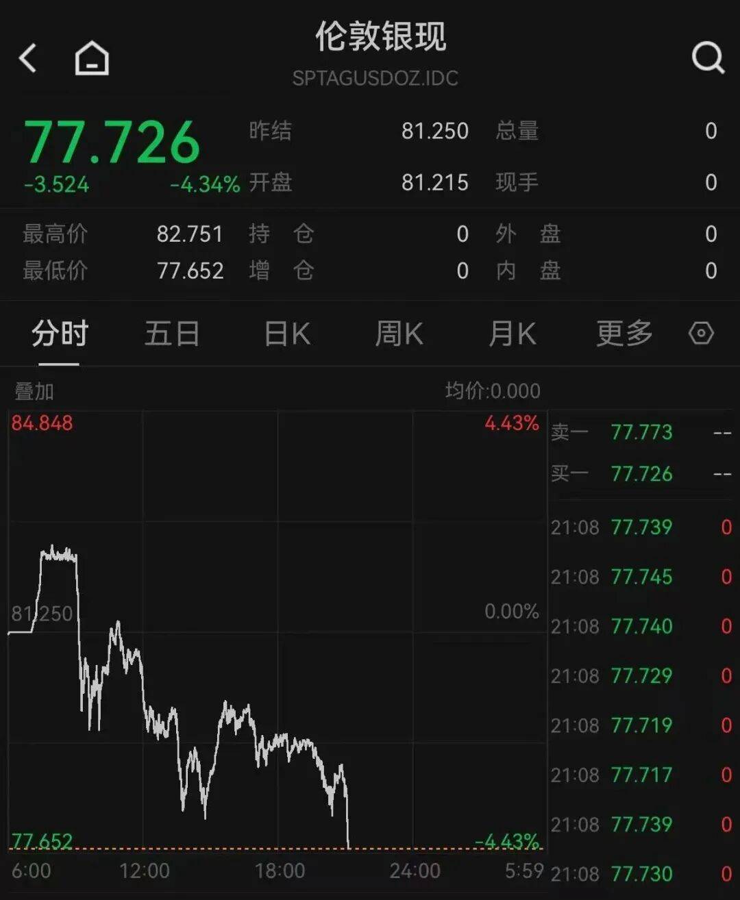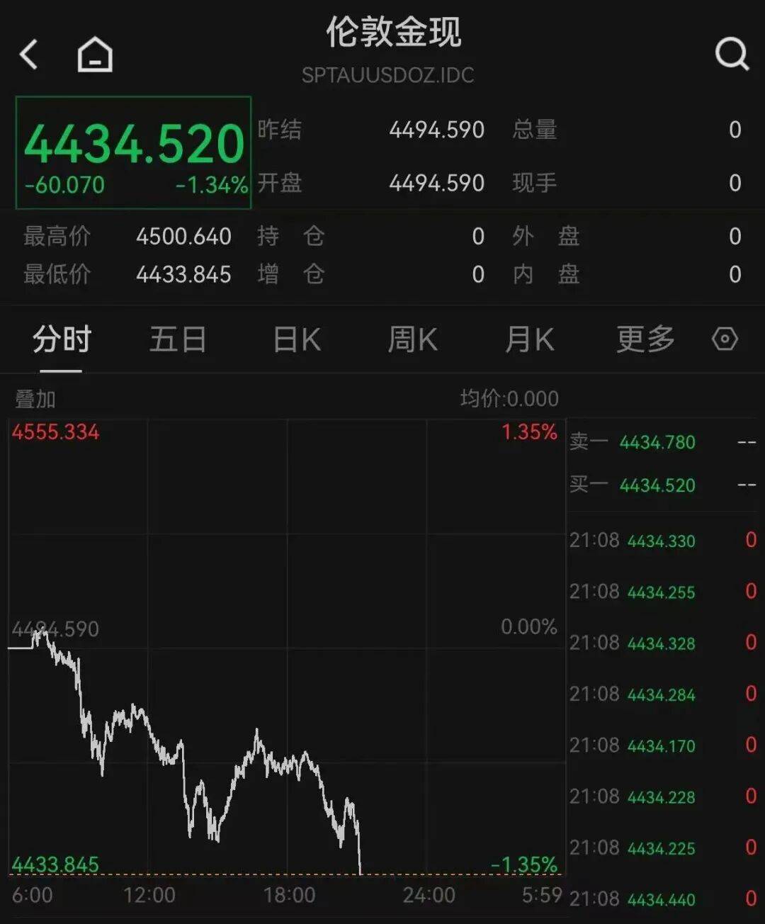 1月7日晚间,黄金、白银集体下跌。截至发稿,现货黄金跌1.34%,报4434.52美元/盎司;现货白银跌4.34%,失守78美元/盎司。