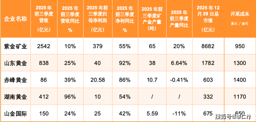 上游矿企的业绩普遍呈现“高增长”态势,像山东黄金2025年前三季度净利润同比增速高达92%,紫金矿业前三季度净利润突破379亿,同比增长55%,再创历史新高。