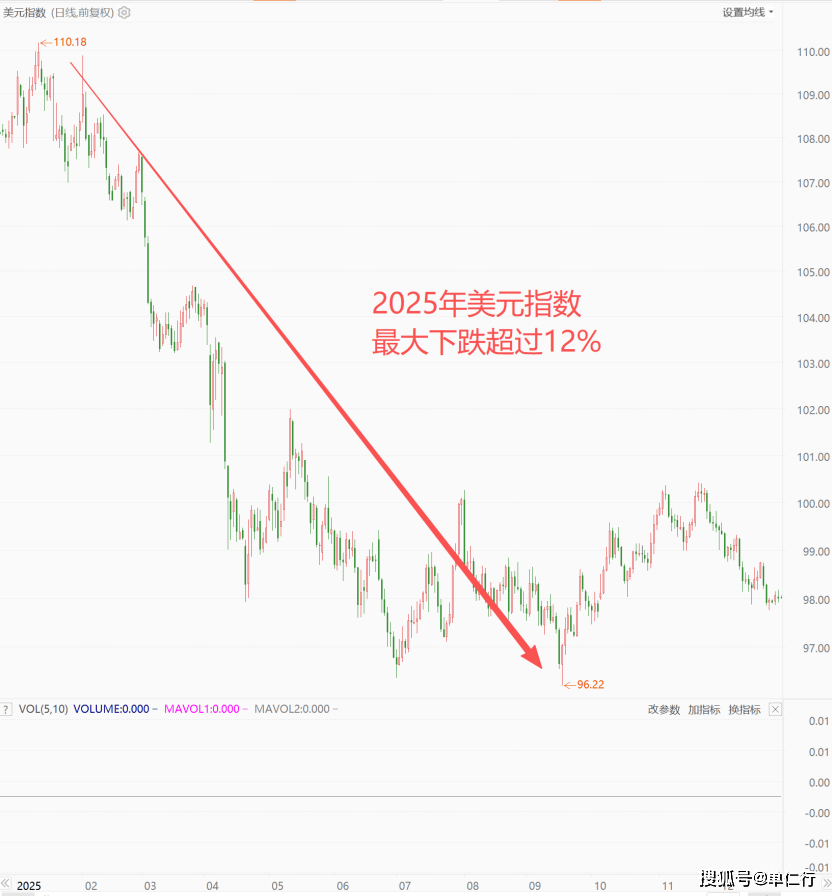 2025年1月以来,美元指数大幅贬值超过12%,直接助推金价突破4500美元/盎司。