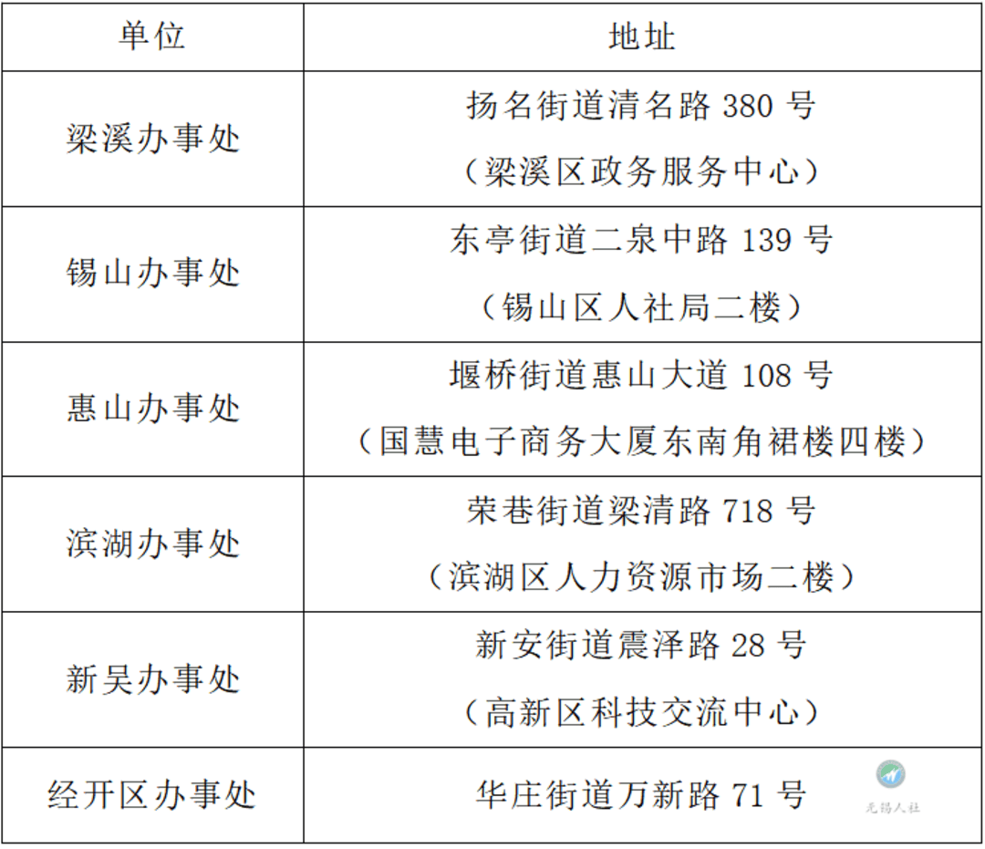 无锡市政务服务人力资源和社会保障分中心(广瑞路2号市人力资源市场一楼大厅)工伤保险待遇支付受理业务和无锡市社保中心服务大厅(广瑞路2号市人力资源市场三楼)工伤保险咨询业务由各办事处承接。新就业形态人员职业伤害待遇申请仍按原渠道受理。广大市民有疑问可咨询电话81880505。
