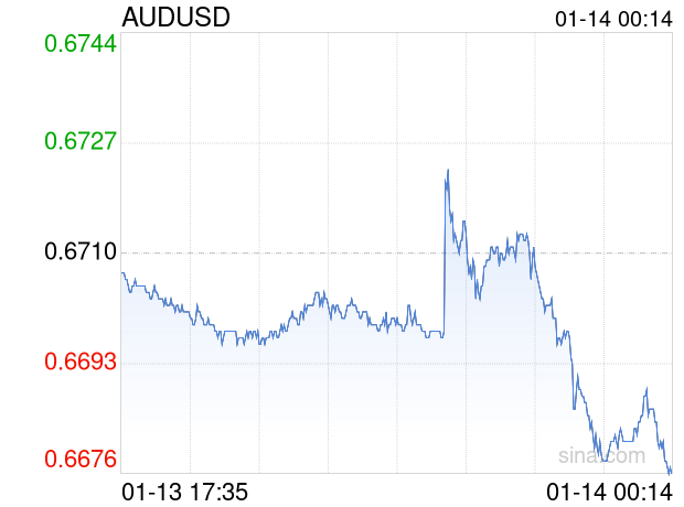 新浪外汇消息2026年01月14日,截至00时14分,外汇市场上澳元兑美元汇率跌破1澳元兑换0.6675美元。跌幅为-0.5216%