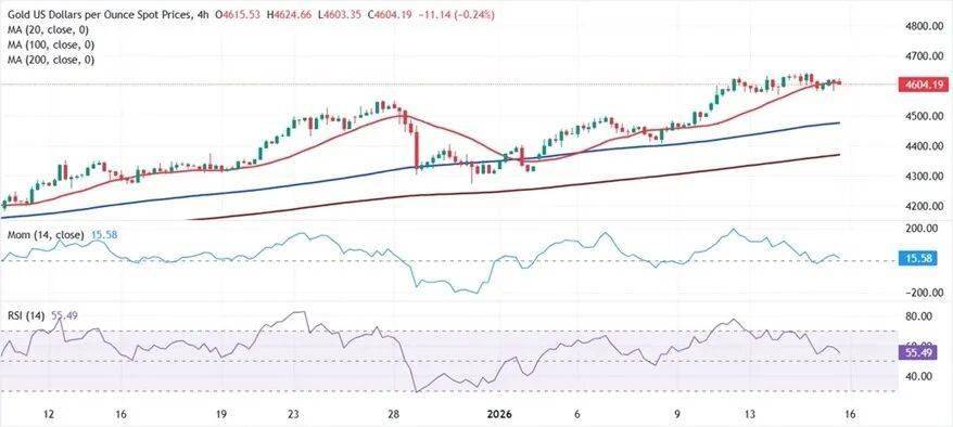 周五(1月16日)亚市盘中,现货黄金维持日内回落走势,目前金价位于4595美元/盎司附近,日内下挫20美元。FXStreet首席分析师Valeria Bednarik撰文,对黄金技术前景进行分析。