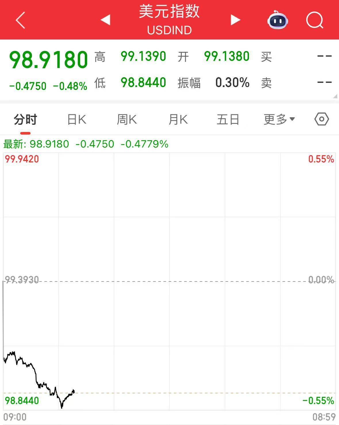 2025年以来,美元指数整体走弱,从2025年年初的110附近下行至100关口附近徘徊。1月20日,据同花顺数据,截至发稿,美元指数日内下跌0.48%。业内人士指出,美元走弱与美元在国际储备体系中的主导地位削弱有关,且与美国政府政策多变、债务高企紧密相连。