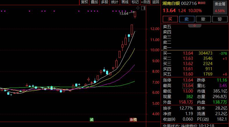 贵金属板块开盘领涨,湖南白银2连板,晓程科技涨超5%,山东黄金、赤峰黄金、山金国际、西部黄金、招金黄金等跟涨。