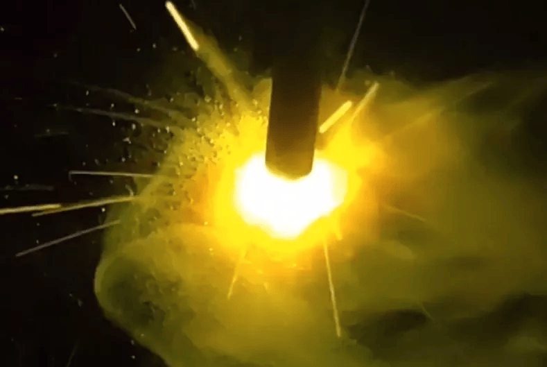 当手持焊把用焊条敲击焊件意图起弧时,注意焊条要倾斜着划擦焊件,不要垂直于焊件,这样就能避免焊条黏连,从而顺利起弧。
