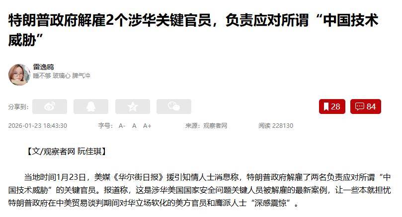 这就是典型的政治正确与商业利益的碰撞,而在现任白宫看来,这类只懂得喊口号、不顾实际经济形势的官员,正是阻碍美国优先、阻碍美国赚钱的最大绊脚石,因此必须坚决清除。共和党内的鹰派对此次人事调整感到震惊,但实际上,他们还没有完全认清眼下的政治现实。早在此前,美国就已经允许英伟达H200芯片对华出口,这已经向外界释放了一个明确信号:只要条件合适,能为美国的再工业化积累资本,安全原则是可以灵活调整的。