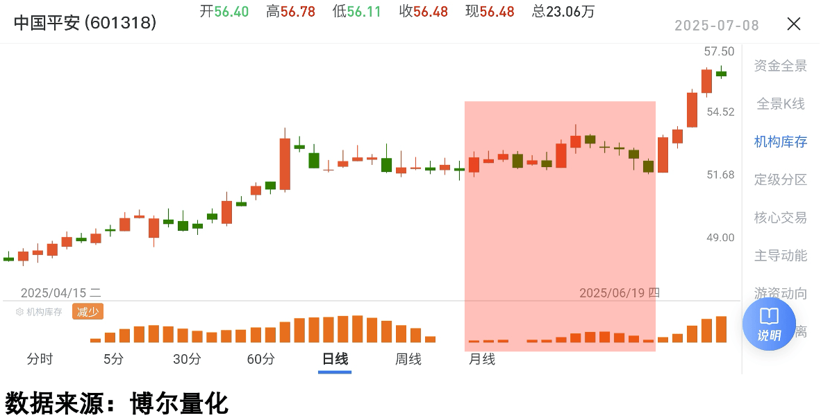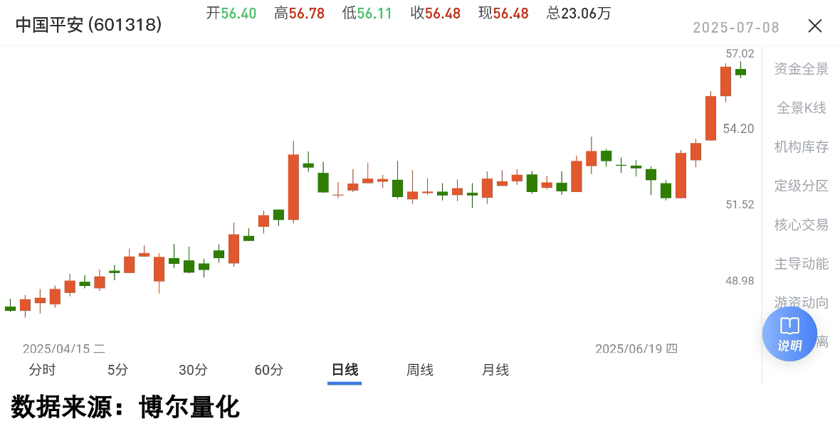 三、中国平安的「慢涨密码」 大资金在悄悄做什么比如2025年6月中国平安发了融资公告,当时股价没反应,直到月底突然涨起来。普通人回头看觉得「早知道就买了」,但当时站在k线前面,根本看不到后面的涨,很可能觉得「利好没用」就卖了: