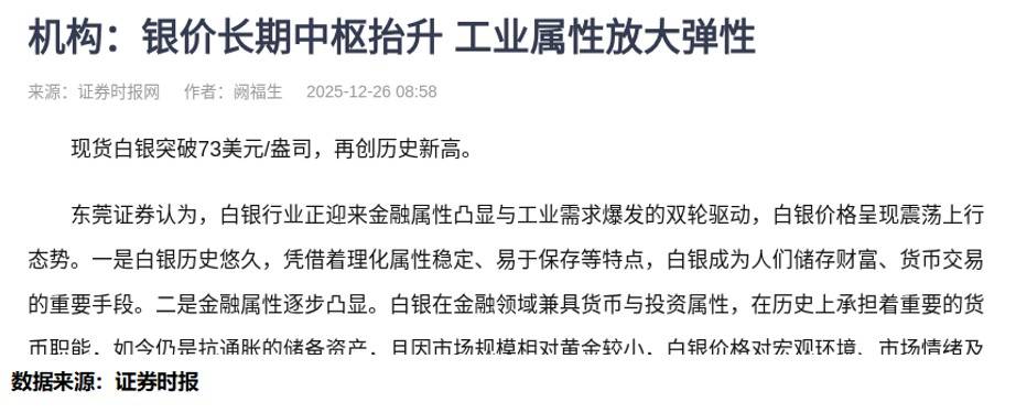 这次白银涨价不是碰运气。东莞证券说,白银现在是「双轮驱动」:一方面它是抗通胀的储备资产,比黄金对市场情绪更敏感;另一方面工业需求在爆发——2024年全球白银消费里,工业占了59%,光光伏用银就占了17%,而且现在主流的TOPCon电池比以前的PERC电池更耗银。兴业证券也补充,美元的稳定性在下降,金银的价格中枢会慢慢往上走。其实股市里的行情也一样,不管是贵金属还是股票,背后都是大资金的「选择」——看懂了大资金的动作,才能跟上行情的节奏。
