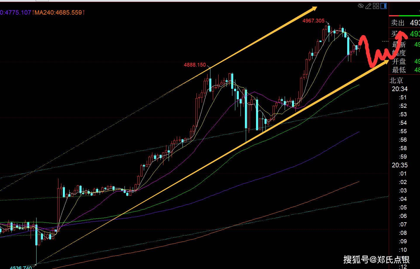 第一,黄金日线级别:昨日探底拉升稳住5均线继续收大阳,连续四天的大阳单边强势拉升,直接即将逼近5000关口,这也是周初指出,黄金的走势轨迹已不再是前几周的震荡上行,而是步入单边连阳强势阶段,那么单边拉升过程中,也要谨慎拉的过快而远离短期均线所带来的风险,当前来看,还并不算太远,继续保持单边北上;当然,连续大阳之后,最好高位来一个小阴修正或十字K修正,可以更好的延续上拉;若一直未出现修正,最终也可能会出现某一日突袭获利盘大阴,当然若出现,也是好事,极速修复之后可以酝酿低位继续开启新一轮单边上拉;5415依旧是今年中旬前的目标;