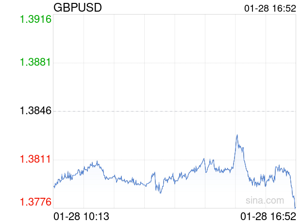 新浪外汇消息2026年01月28日,截至16时51分,外汇市场上英镑兑美元汇率跌破1英镑兑换1.3776美元。跌幅为-0.5056%