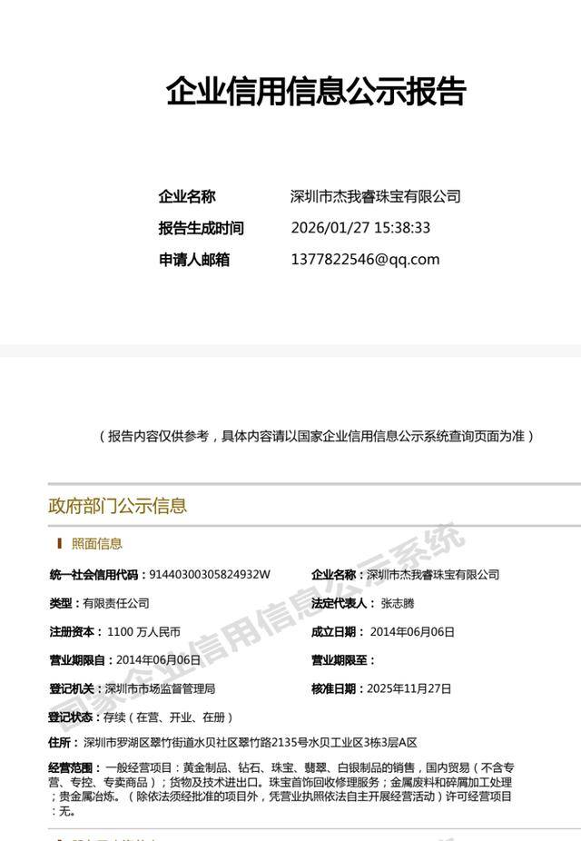 杰我睿在深圳水贝设有实体门店,主营贵金属及珠宝的买卖回收。老板张志腾和一众亲友均是水贝小有名气的金圈网红/从业者,其中张志腾在小红书拥有近7万粉丝。
