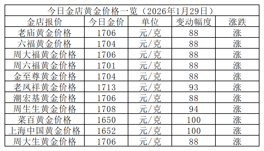 以下是各大品牌金店详细报价: