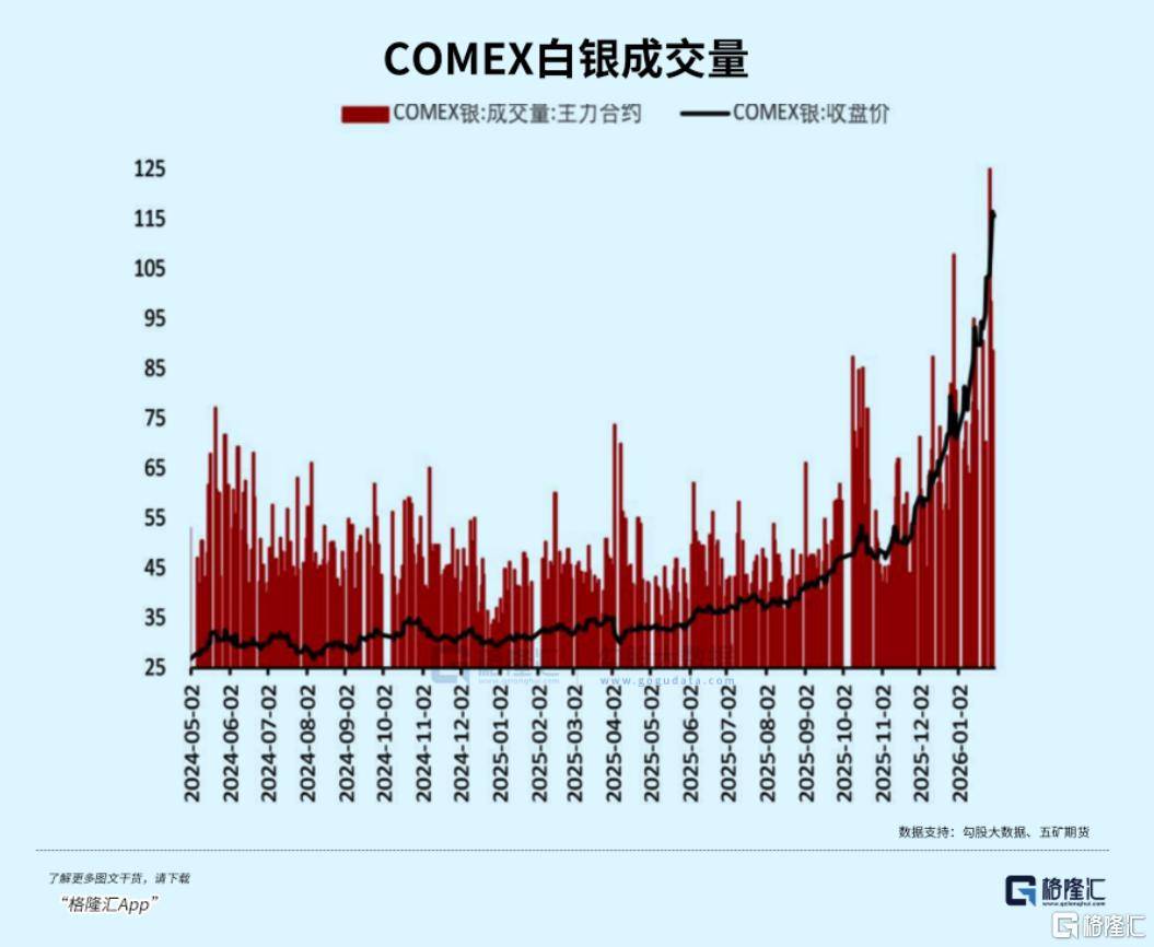 截至1月27日,COMEX认可的库存白银总持有量降至4.117亿盎司,可用于期货合约即时交割的白银注册库存仅为1.077亿盎司,而未平仓合约总量为152020份,相当于7.6亿盎司的白银,注册库存仅能覆盖未平仓合约的14.2%,空头投资者无法按时交割白银,只能被迫平仓,推动银价上涨。