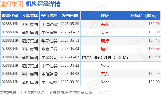 截至2025年6月5日收盘,渣打集团(02888.HK)报收于122.1港元,下跌0.16%,成交量29.34万股,成交额3556.41万港元。投行对该股的评级以买入为主,近90天内共有3家投行给出买入评级,近90天的目标均价为154.36港元。中信建投最新一份研报给予渣打集团买入评级,目标价169港元。