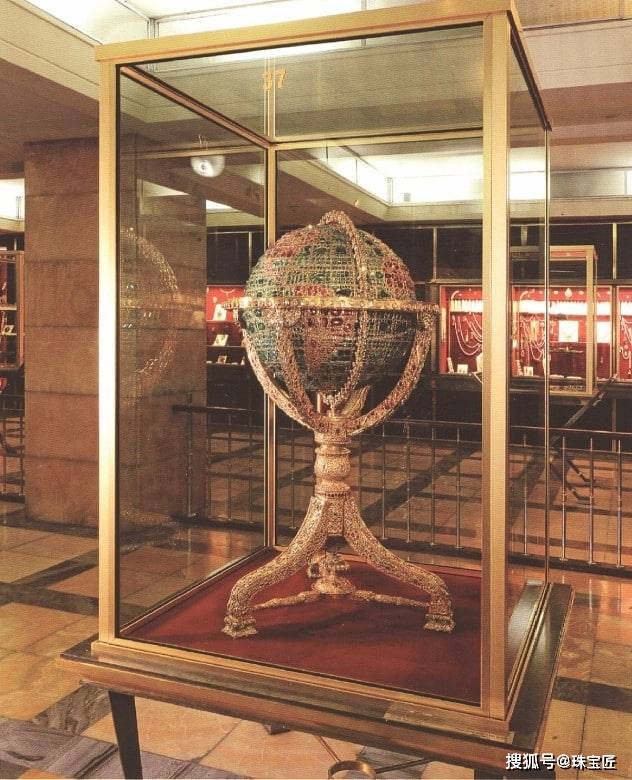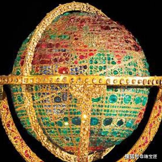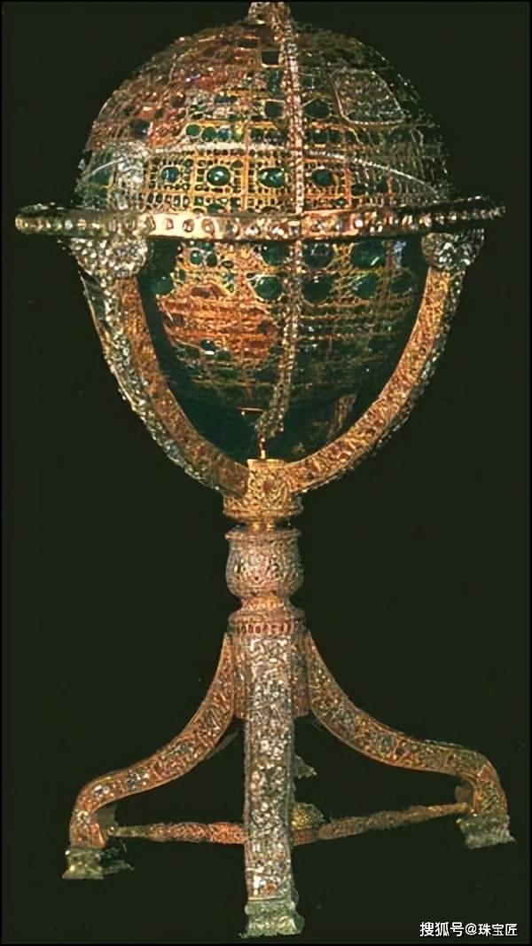 地球仪在构思设计上也十分巧妙,匠人们用绿莹莹的祖母绿代表广袤的海洋,用耀眼的红宝石和尖晶石绘制陆地,以钻石勾勒国界、河流乃至赤道。