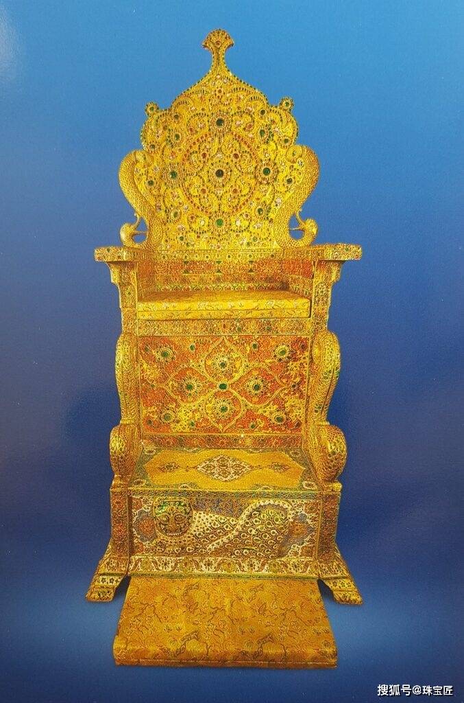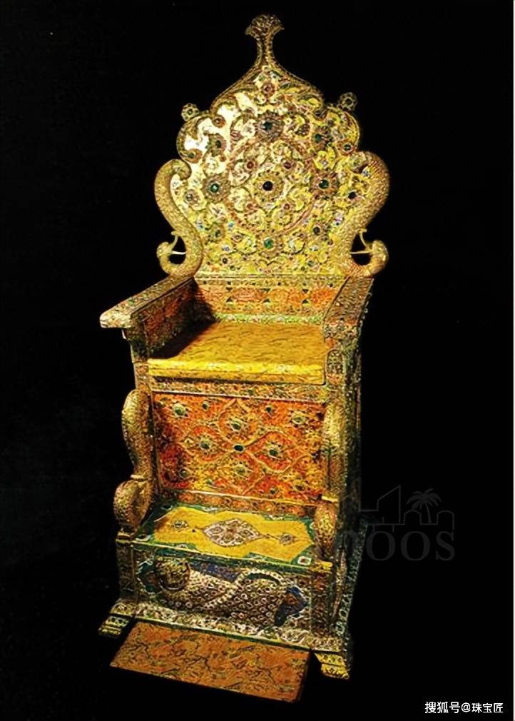 王座上共点缀26733颗珍贵宝石,其中靠背上有四颗尖晶石,最大的一颗重达65克拉,还有四颗祖母绿,最大的一颗重约225克拉。宝座上最大的红宝石重35克拉,华美异常。