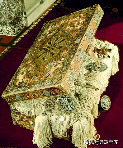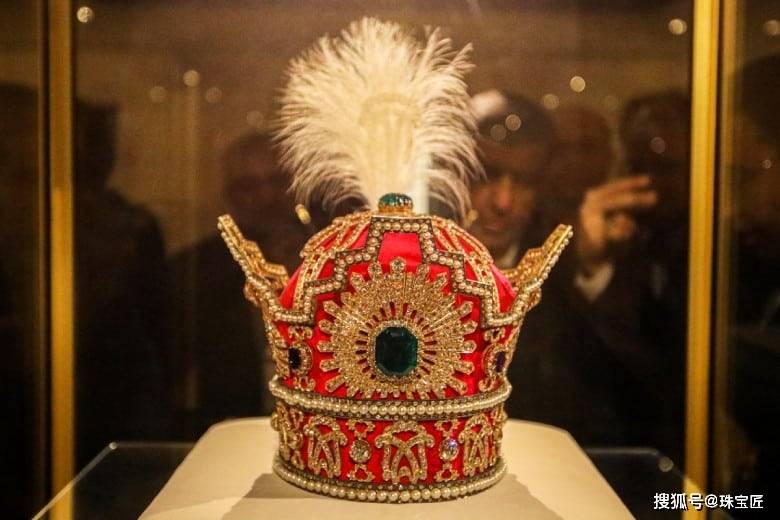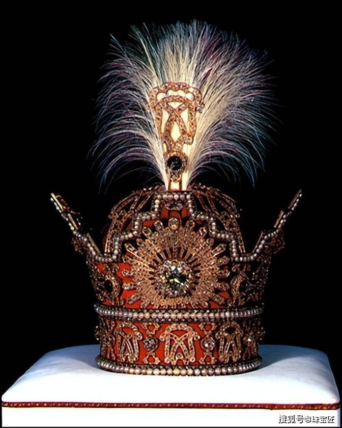 位于王冠正中央的,是一颗重达120克拉的尖晶石,其上方还点缀着一颗重80克拉的祖母绿,奢华夺目,展现了当时精湛的工艺水平与独有的艺术风格。