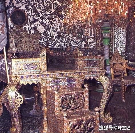 1874年,卡扎尔王朝第四任君主纳赛尔丁·沙(1848-1896在位)面对宝库中散落堆积的宝石(真·珍珠如土金如铁),想出一个别致的整理之法——将它们镶嵌成一件兼具实用与观赏价值的艺术品。