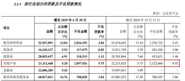 2025 年 6 月末,房地产不良贷款余额 20.58 亿元;不良率 9.75%,较 2022 年的 4.06% 翻了一倍多。