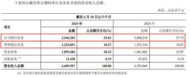 2025 年上半年,零售业务收入 12.36 亿元,仅占总营收的 18.47%;公司业务收入 35.46 亿元,占比 53%,仍是绝对主力;个人贷款增速 3.96%,远低于个人存款 18.3% 的增速,钱吸进来了,却放不出去。