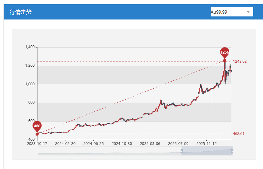 AU99.99近几年行情走势,截图自上海黄金交易所