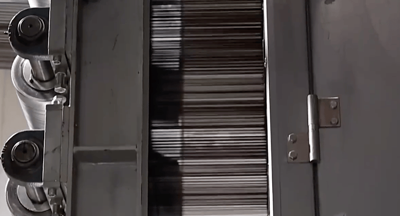 预氧化在内部温度200℃到300℃之间的氧化炉中进行,最考验火候的把控。就像煎3分熟的牛排,先用温火慢煎,里面既不能太生,表面也不能太焦。它的作用是让原丝更耐热,在后面的高温碳化过程中不会熔断。